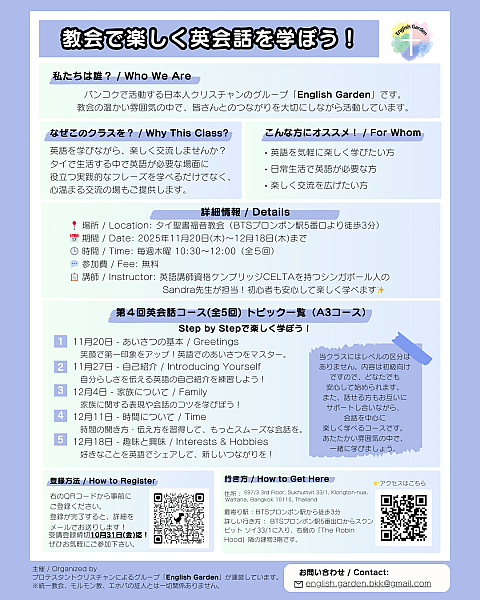 バンコクで活動する日本人クリスチャンのグループ「 English Garden」 です。